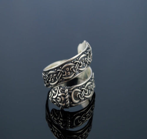 Ouroboros Ring with Viking Ornament Sterling Silver Norse Ring