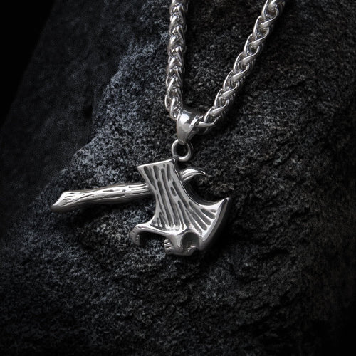 Silver Skull Axe Pendant Viking Necklace