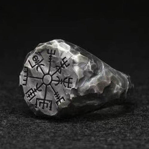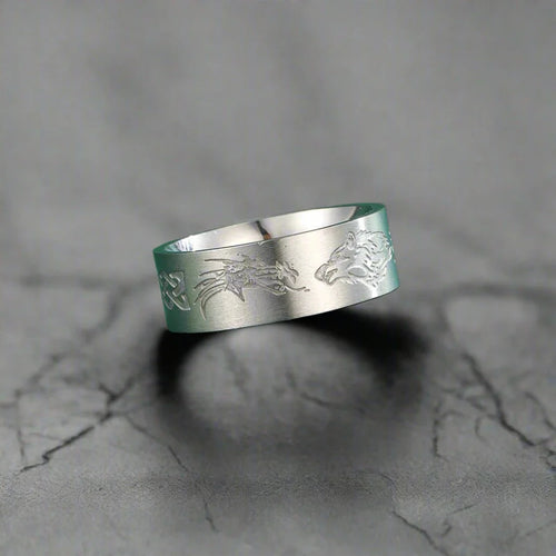Stainless Steel Viking Ring with Carved Wolf Sigil | Celtic Knot