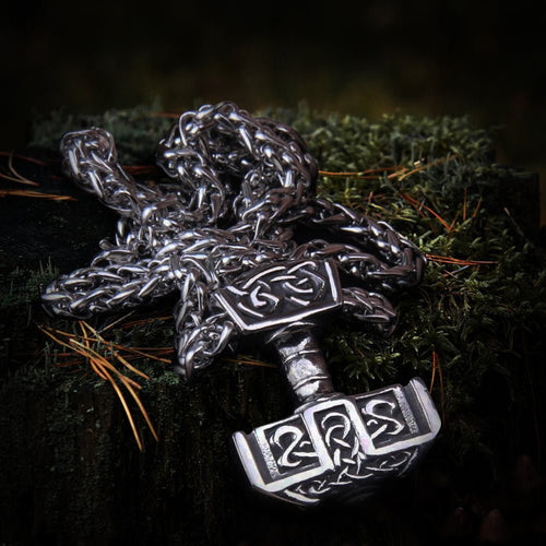 Steel Knotwork Heavy Thor's Hammer Mjolnir Pendant Necklace