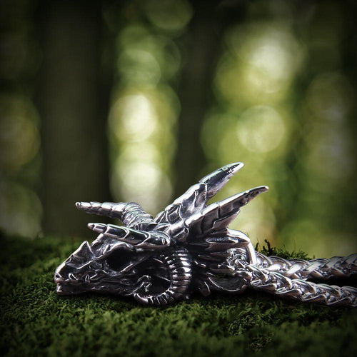 Dragon Skull Steel Pendant Necklace - Nidhogg Corpse Eater