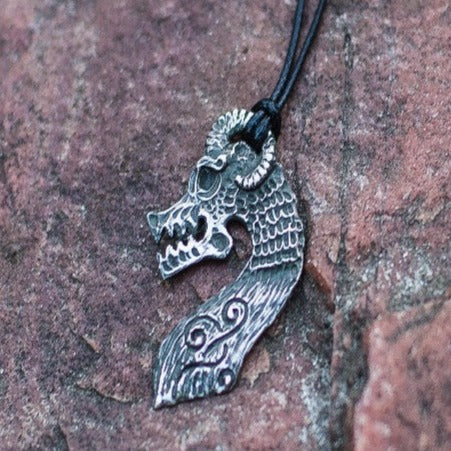Drakkar Pendant with Norse Symbols Sterling Silver Viking Necklace