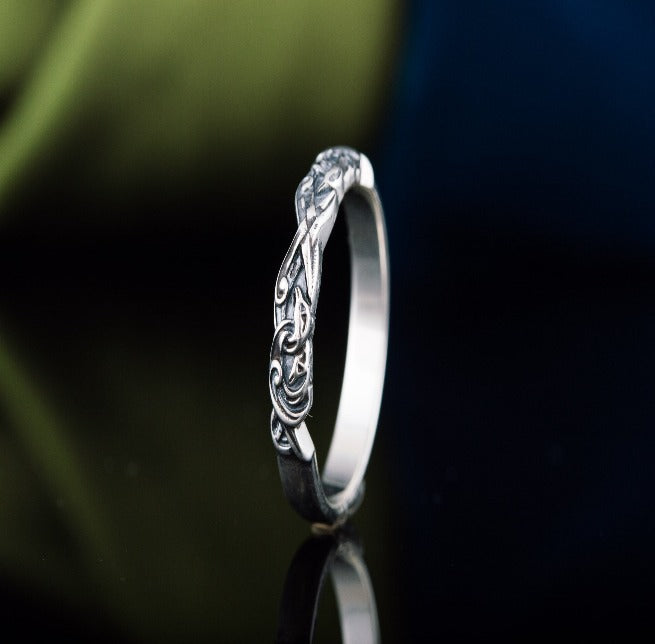 Channel the mystique of the Viking age with our Sterling Silver Raven Ring. The ring's design features the revered bird of Norse legend, reflecting a deep connection to heritage and historical fashion. Each piece is crafted with care to be a statement of your passion for reenactment or period-styled events.