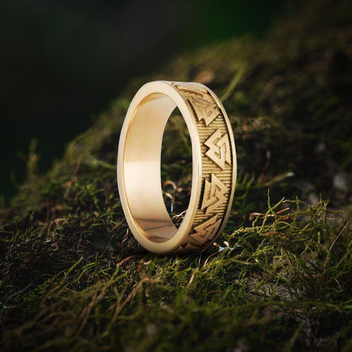 Valknut Symbol Ring | Handmade 14K Gold | Norse Historical Jewelry