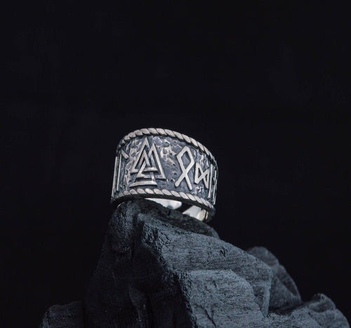 Valknut Symbol With HAIL ODIN Runes Sterling Silver Pagan Ring