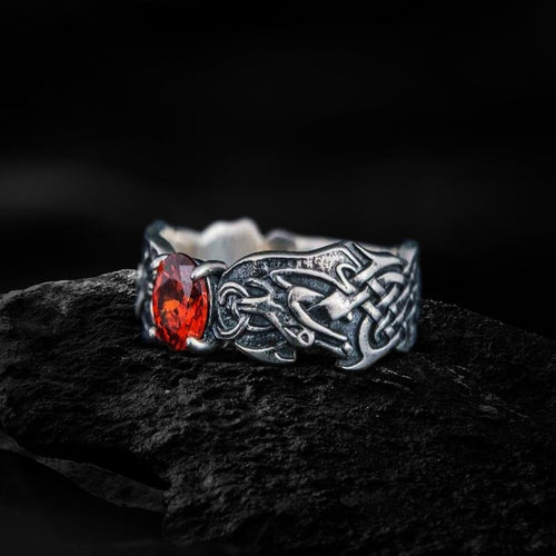 Viking Ring with CZ and Norse Ornament Sterling Silver Viking Ring